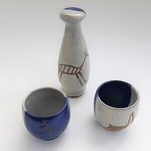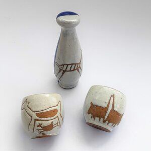 Vintage Cerâmica Serra Da Capivara Brazil Pottery Set - decorated with antient Cave Paintings.