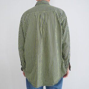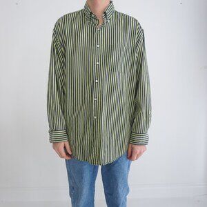 VTG Brooks Brothers Sport Shirt Green Pinstripe Cotton Button Down Dress Shirt L