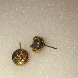 VTG Butler Blue Rhinestone Stud Earrings Gold Tone Costume 10mm