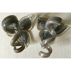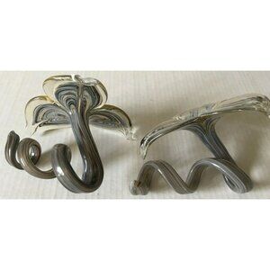 VTG C. 1980 2 Art Glass Paperweight Handblown Decor Swirl Lily Flower Gray 5*4"
