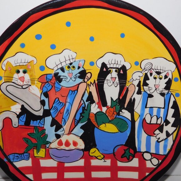 This super fun collectible Vintage 2002 Candace Reiter Designs Catzilla Cat Chefs Cooking 8" Side Tea Sandwich Plate is in great clean bright condition. Not recommended for Microwave or Dishwasher. Perfect for use as a special serving plate or home art decor.