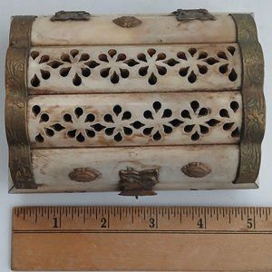Handmade in India, it features a matte finish and is made from bone material decorated with ornate brass accents.