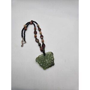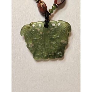 VTG Carved Jadeite Butterfly w/ Onyx Jasper Agate Jade Gemstone beads necklace