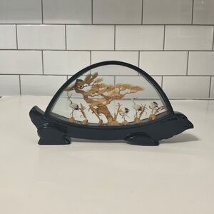 VTG Chinese Diorama cork Stork Wood Case signed San You