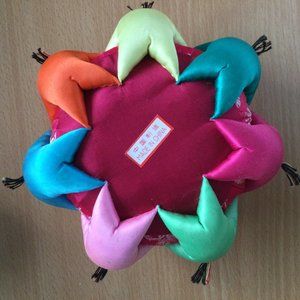 VTG Chinese Round Silk Pin Cushion jar red Painted 7 Children box31