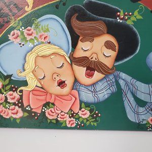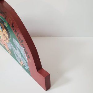 VTG Christmas Wall Decor Hanging Wood Plaque Handpainted Carolers Holiday Wishes