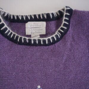 VTG Christopher & Banks Purple Floral Tree Embroidered Christmas Sweater L