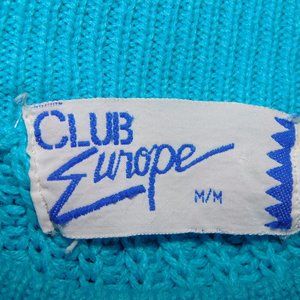 This Vintage Womens Medium Club Europe Blue Chunky Knit oversize Crew Neck Sweater is in great clean bright condition. Sweater is 100% Acrylic - Machine washable.