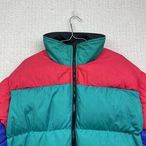 VTG Columbia Retro Multicolor Block Reversible Ski Down Puffer Jacket Men Sz L