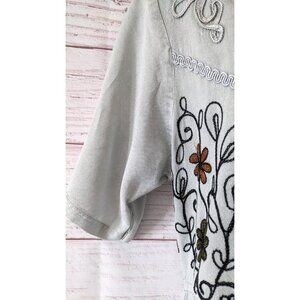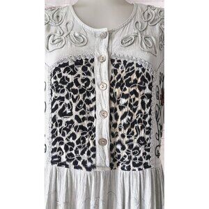 VTG Cool Plus Women Dress Midi Gray Cotton Crepe Short Sleeve Embroidery Size M