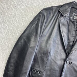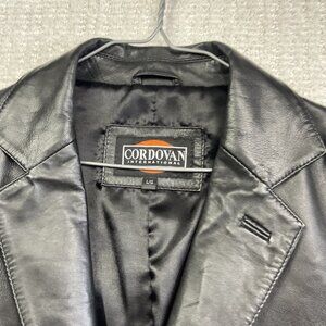VTG Cordovan Black Leather Blazer Jacket Sports Coat Men Sz L Boxy 2 Button