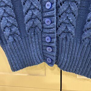 VTG Cozy Blue Cable Knit Button-Front Sweater Vest Classic Chunky Knit Layer