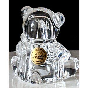 VTG Cristal D’Arques Teddy Mini Figurine Holding Flowers 24% Lead Sticker France