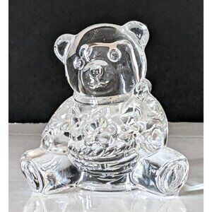 Description : Miniature figurine , more than 24 % lead crystal , teddy bear holding basket with flowers , hollow inside, made in France, sticker .