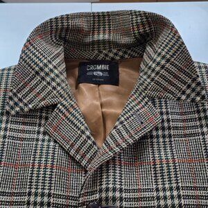 VTG Crombie Wool Coat 44 Glen Plaid LS Lined 1 Vent Buttons Union Made Classic
