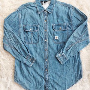 VTG DKNY Jean Women's Blue Denim Button Down Pockets Long Sleeves Shirt Siz M