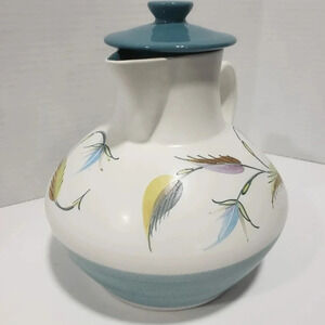 VTG Denby Stoneware Pitcher with Lid Spring Leaf Design Teal/White.
