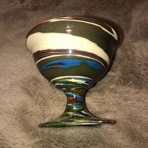 or cracks in glaze - beautiful swirled colours. Stamped and made by desert sands pottery - mid century pottery decor
