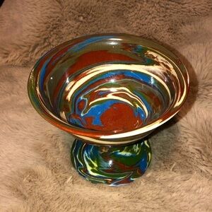 VTG Desert Sands Pottery Footed Bowl Dish Swirled Earth Tone Colours Mid Century