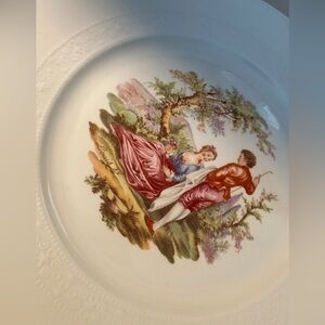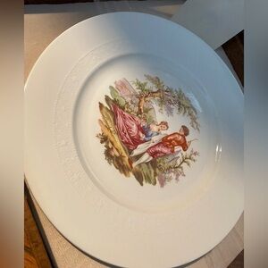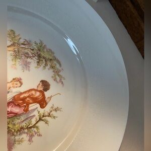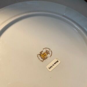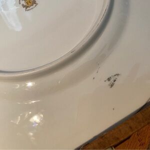 It still is in original box. Everything is in excellent condition. The plate has a mark on the back. It came like this. There is a certificate in Italian from the manufacturer. It comes from a non smoking home.