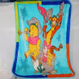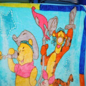 VTG Disney Winnie the Pooh Tigger Piglet Pirates Plush Fleece Blanket 42 x 56