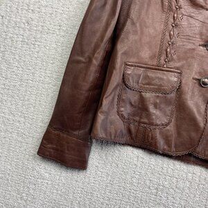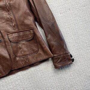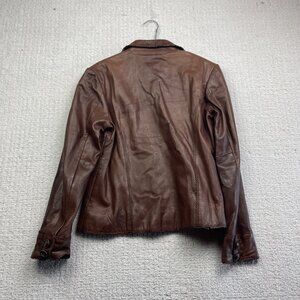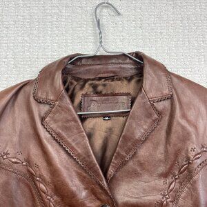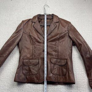 VTG Dominique Western Brown Leather Jacket Women's M Hipster Biker Pockets
