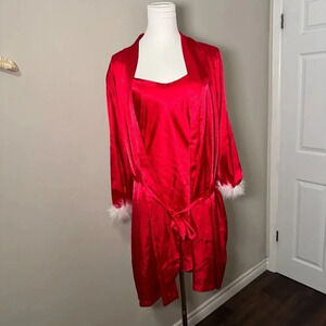 VTG Donatella Women's Red Two-Piece Robe/Slip Dress Set Size XL Holiday Glam