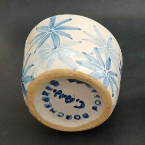 Dorchester Pottery was founded in 1895 by George Henderson in Dorchester, Massachusetts. The pottery produced, particularly the blue and white decorated pieces, became highly sought after by collectors from 1940 until its closure in 1979. The pattern of star-shaped flowers is not known as as blue pine cone pattern. Both are notable designs from this period, reflecting the company's artistic evolution and popularity in the market