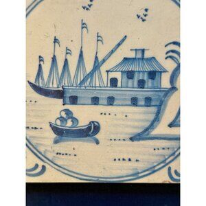 VTG Dutch Delft Blue and White Tile Holland Framed Wall Hanging