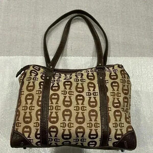 VTG ETIENNE AIGNER Brown Monogram Canvas Shoulder Tote