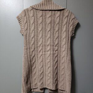 Eddie Bauer Vintage Cable Knit Short Sleeve Long Cardigan/Vest with Convertible Neck