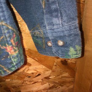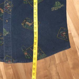 Vintage Eddie Bauer Wildlife, Outdoor, Camping Print Button Up Navy; Men’s XL Heavyweight Overshirt Jacket