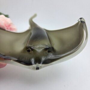 VTG Edinburgh Art Glass Stingray Sculpture MCM Style Smoked Grey Marine Figurine