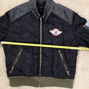 VTG Energie Men's LRG Bomber Jacket Italian90s Vespa Scoot Expo Denim collar