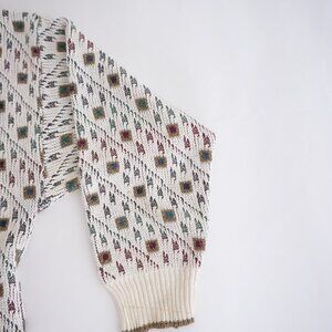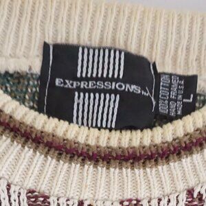 VTG Expressions Ivory Cotton Patterned Knit Retro Cabincore Eclectic Sweater L