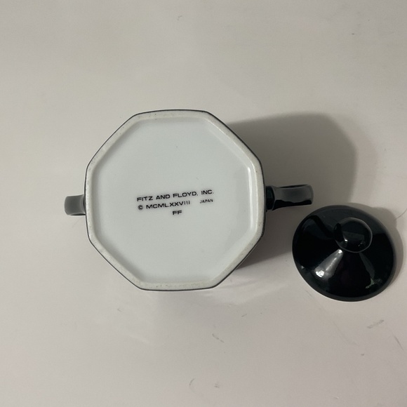 VTG Fitz & Floyd Total Colour Black Octagonal Covered Sugar 1978
