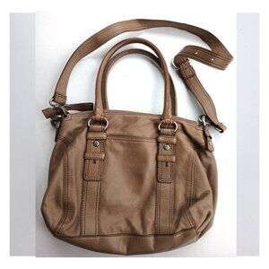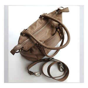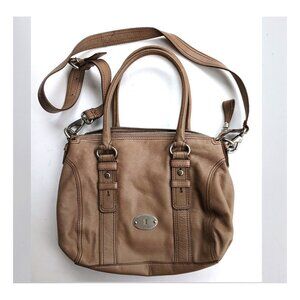 VTG Fossil Maddox Classic Taupe Leather Satchel HandBag Tote with Shoulder Strap