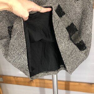 Vintage Francesca Mammoliti Beker Designs Vintage Wool Herringbone Tweed Diagonal Lace Appliques Midi Skirt Sz M *No size label*