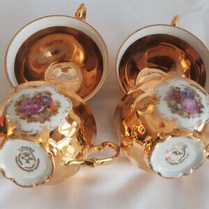 VTG Gold Luster 4 Tea Cups Gilded Bavaria Germany Leni Parbus Courting Couples