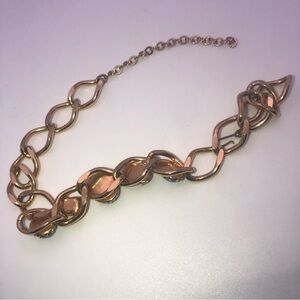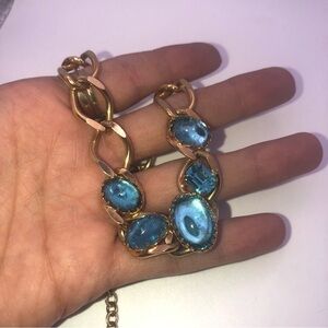 Vintage gold tone choker length chain necklace set with blue glass? Stones.
