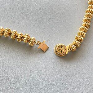 VTG Gold Tone Ribbed Ball Necklace & Bracelet