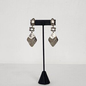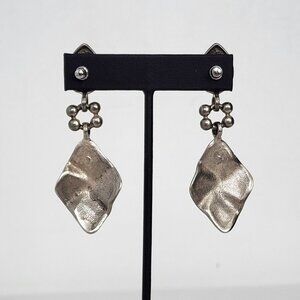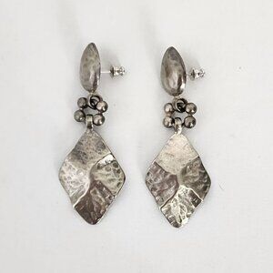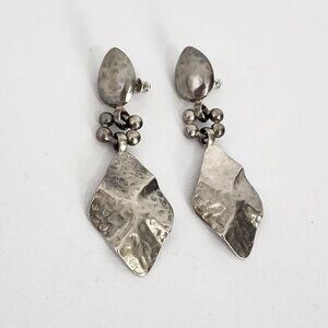 VTG Hammered Silver Brutalist Drop Earrings Artistic Unique VTG Drk Boho Grunge