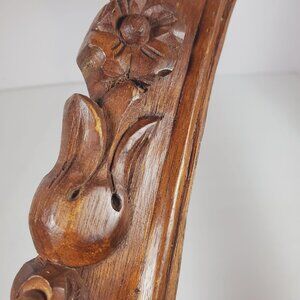 This vintage hand-carved wooden oval frame is a stunning piece of craftsmanship, adorned with intricate floral carvings that bring warmth and texture to any space. Each petal and leaf is carefully sculpted, giving the frame a dimensional, old-world charm perfect for a mirror, portrait, or botanical print.