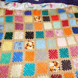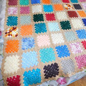 VTG Hand Crochet Knit Multi Colour Granny Square 48" x 58" Afghan Throw Blanket