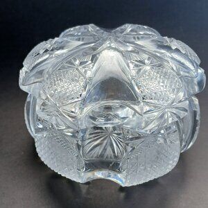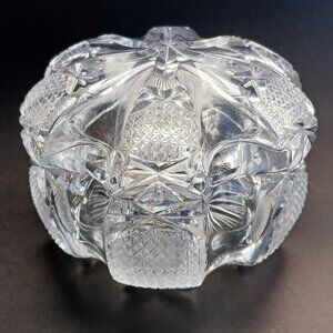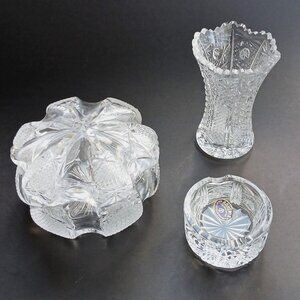 VTG Hand Cut Lead Crystal Queen's Lace Bohemia Czech Lot of 3 Vase Trinket w/Lid