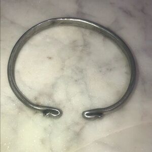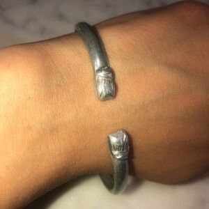 VTG Handmade Aluminum Bangle Open Cuff Bracelet w Folded Engraved Design Ends 8”