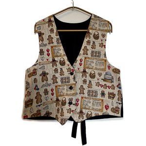 VTG Handmade Vest Women Large Tan Black Gingerbread Granny 90s Xmas Cottagecore