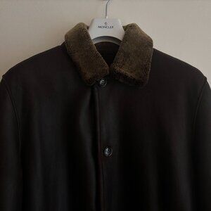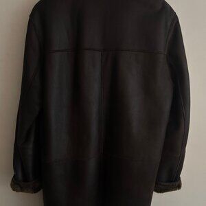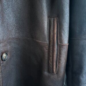 A dark brown leather shearling coat from Harry Rosen.
