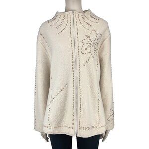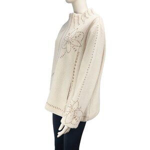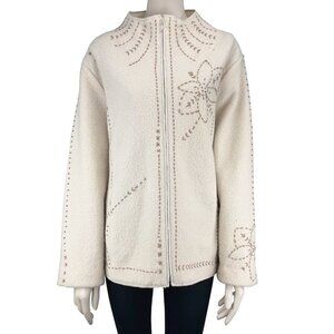 VTG Icelandic Design Embroidered Wool Lined Zip-up Cream Jacket (M to) XXL