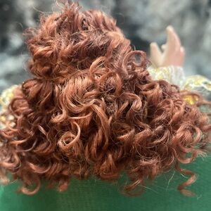 Her cape / robe is beautifully decorated with frilly gilt gold material. Very good condition. She is missing her crown